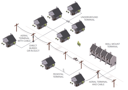 FTTH connects optical fiber to residencies and transfers the data through light signals. It led to achieving higher performance than other networks. FTTH works through fiber optic cables from the central office with a fiber distribution hub and through a network access point. After that, it is installed in the home with the help of a terminal.